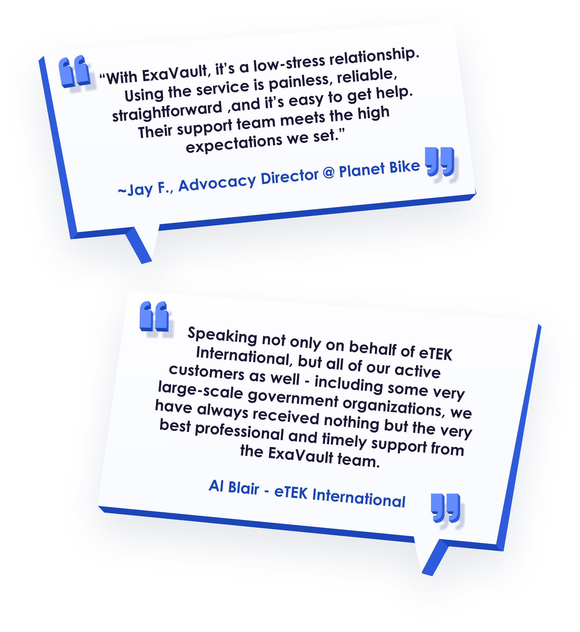At ExaVault, we believe that no matter how big your business is, providing support is part of our promise to you. If you need help, we're here – our engineering staff can host a webinar and train you on the product or troubleshoot the most difficult problems. This includes knowledgeable staff to assist with FTP or SFTP support.